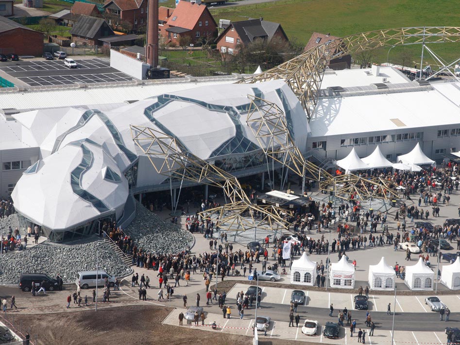Due to the strong growth in recent years with a production of about 150-200 vehicles per year, the company has built a new factory, made with lots of glass. The hallmark of the new building is a giant gecko (based on the vehicle logo) with a length of 155m, which was erected upon the roof and can be seen from the A 43 motorway.